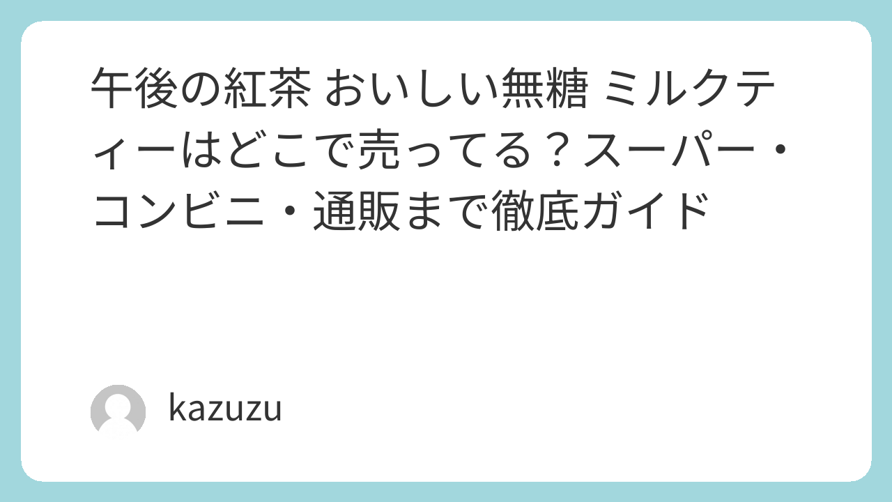 | スーパー | ★★★★☆ | イオン・西友・ライフ・イトーヨーカドーなど | 午後ティーの列+無糖紅茶の固まりを探す。特売のエンドに積まれることも。 |