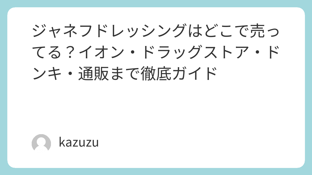 | コンビニ | ★☆☆☆☆ | セブンイレブン・ローソン・ファミリーマート | ドレッシング自体はあっても定番中心。ジャネフは置かれることが少なめで、あればラッキー寄り。 |