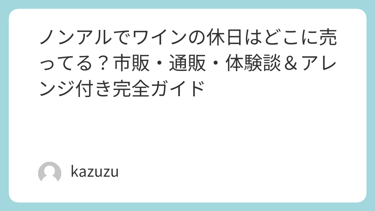 - スーパー:イオン、イトーヨーカドー、西友、ライフ、マックスバリュなど。ノンアル飲料・ワイン風飲料の棚が狙い目。
