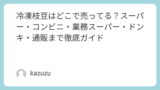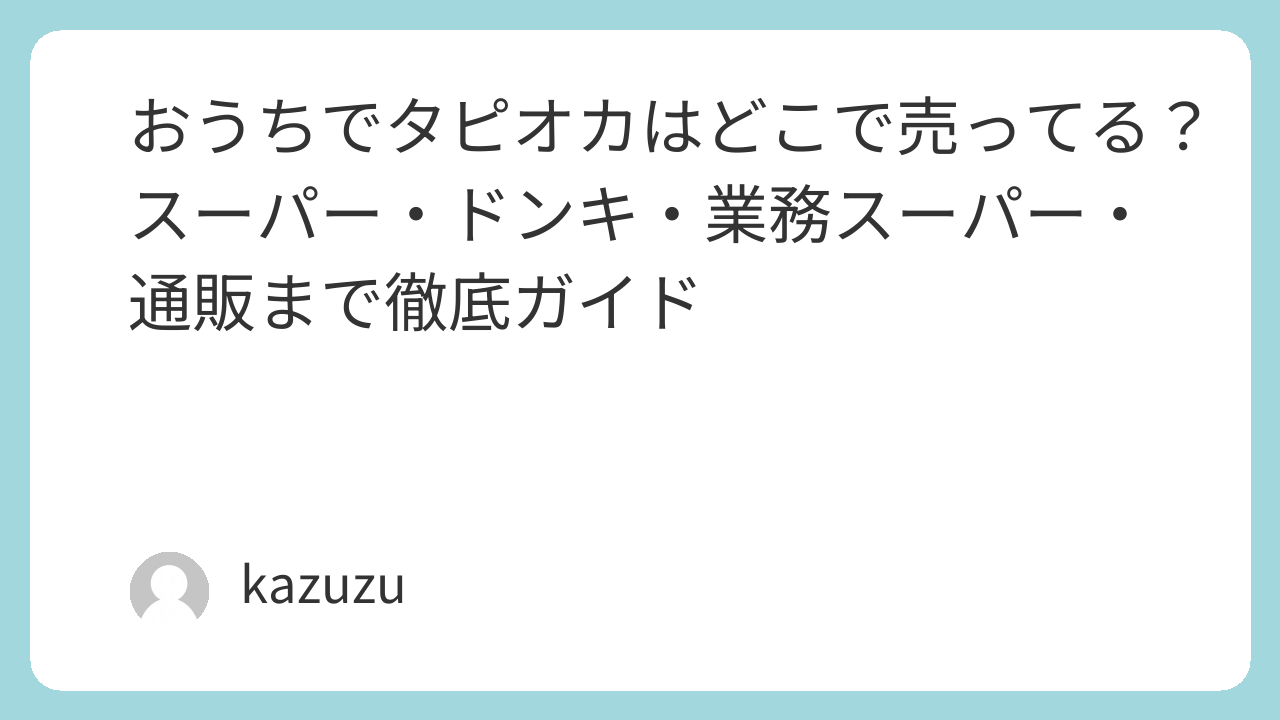 | 業務スーパー・ディスカウント店 | ★★★☆☆ | 業務スーパー・ドン・キホーテ | 「冷凍タピオカ」や類似品が見つかることがある。冷凍ケースと輸入食品棚を広めに見る。 |