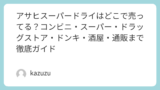 | ドラッグストア | ★★★☆☆ | ウエルシア・スギ薬局・マツモトキヨシなど | 酒類取扱いのある大型店舗を中心に探す。 |